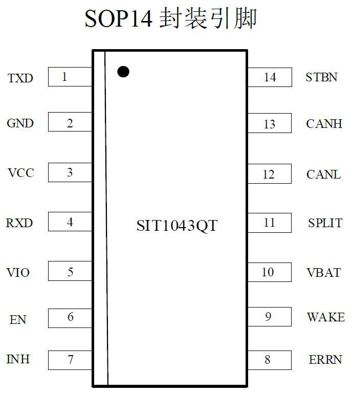 隨著全球變暖,低碳發(fā)展與新能源結(jié)構(gòu)轉(zhuǎn)型成為全球發(fā)展趨勢,在此背景之下促使新能源汽車持續(xù)釋放。隨著當(dāng)今汽車電子系統(tǒng)的復(fù)雜性日益增加,對于電動新能源汽車在不增加汽車部件成本的基礎(chǔ)上,提升電動汽車的能效及安全性提上日程。在此背景之下,芯力特電子在第一代SIT1040與第二代SIT1042CAN芯片基礎(chǔ)之上,研發(fā)出第三代高速CAN總線收發(fā)器SIT1043Q通信芯片,用以解決車載CAN通信同時,還實現(xiàn)CAN網(wǎng)絡(luò)診斷、故障安全保護、超低功耗睡眠等功能。與此同時SIT1043Q在電磁兼容(EMC)性能上有顯著提高,獨立HS-CAN收發(fā)器+低功耗管理+網(wǎng)絡(luò)診斷保護 解決方案,這使汽車制造商在提升整車系統(tǒng)性能、產(chǎn)品質(zhì)量和可靠性的同時,也大大降低了汽車整個網(wǎng)絡(luò)的能耗。以下是SIT1043Q芯片引腳分布及功能: