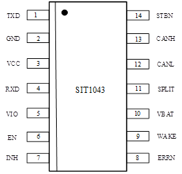SIT1043是一款應用于 CAN 協(xié)議控制器和物理總線之間的接口芯片,支持 5Mbps 靈活數據速率(Flexible Data-Rate),具有在總線與 CAN 協(xié)議控制器之間進行差分信號傳輸的能力。SIT1043總線端口耐壓可達-58V至+58V,接收器共模輸入電壓達到-30V至+30V,適用于 12V 或 24V 應用系統(tǒng)。SIT1043采用多電源供電,擁有多種系統(tǒng)保護和診斷功能以提高器件和 CAN 的穩(wěn)定性。另外,SIT1043擁有五種工作模式:正常工作模式、靜音模式、待機模式、睡眠等待模式和睡眠模式,在低功耗模式下支持本地喚醒與遠程喚醒;所提供的低功耗模式管理可極大節(jié)省 CAN 總線應用系統(tǒng)的電力,SIT1043帶INH腳功能,能夠控制給系統(tǒng)供電的LDO,使系統(tǒng)在休眠模式下關閉LDO輸出,達到最低功耗,以滿足客戶的低功耗需求。