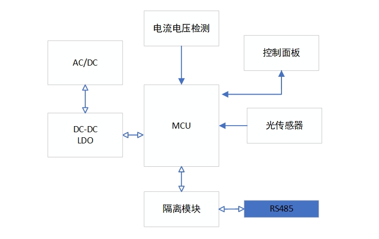 通過RS485總線將MCU信號傳輸?shù)狡渌?jié)點控制燈光。
