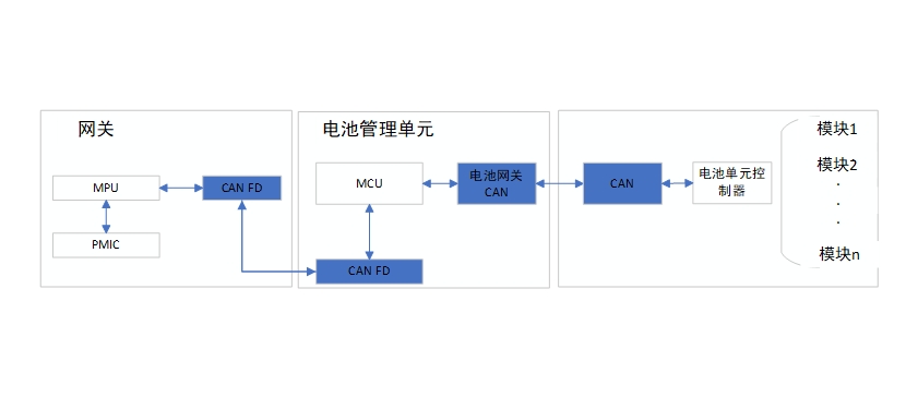 網(wǎng)關(guān)通過(guò)CAN FD芯片與電池管理單元進(jìn)行通信。